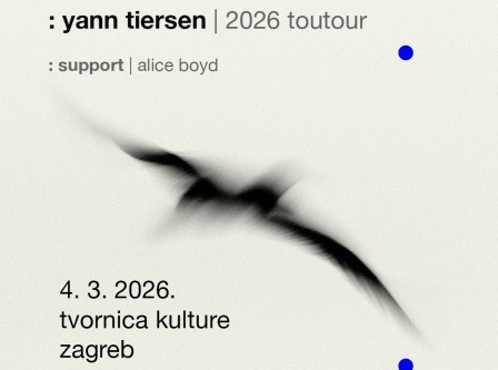 Iz južnog Londona u Tvornicu kulture stiže kantautorica, umjetnica zvuka i audio producentica Alice Boyd. Njen premijerni nastup u Hrvatskoj bit će sjajna uvertira za koncert Yanna Tiersena 4. ožujka koji će tom prilikom predstaviti najnoviji album “Rathlin From a Distance / The Liquid Hour.” Ovaj genijalni francuski skladatelj, producent i aktivist još će jednom potvrditi zašto uživa izuzetnu reputaciju u globalnim razmjerima