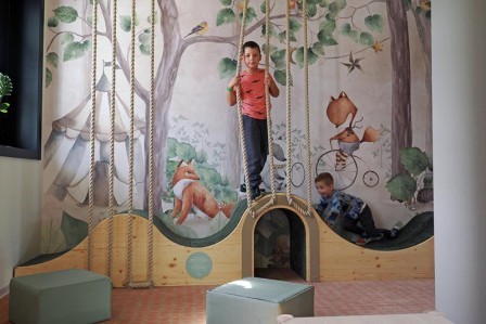 Koncept "gdje rastu obiteljske priče" zapravo je nit vodilja koja se provlači kroz cijeli hotel. Umjesto klasičnog ulaza u hotel s recepcijom male i velike dočekuje posebno dizajnirano prizemlje s prostranom igraonicom u kojoj svako dijete pronalazi svoj kutak za igru. Tu su tematski korneri, stilizirane penjalice, viseći most, ali i ugodna PlayStation igraonica u kojoj se mogu zabaviti i roditelji i djeca. Ono što oduševljava je to da se djeca na ovom mjestu brzo upoznaju s vršnjacima, a igra traje do trenutka kad svi krenu na spavanje.