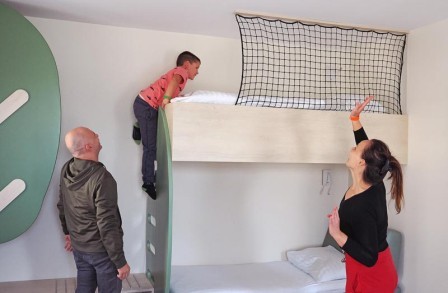 Sobe u ovom family hotelu su posebno dizajnirane, šarene, svijetle i prostrane, s kreativnim elementima kao što su dvoetažni kreveti s motivima drveća, prekrasnim tapetama na zidovima, kornerima za učenje, ali i divnom rasvjetom u obliku oblaka i lišća. Površinski sobe su različite veličine, ovisno o veličini obitelji koja u njima boravi. Za veće obitelji su tu odlično dizajnirane međusobno povezane sobe koje pružaju poseban doživljaj boravka na ovom mjestu.
