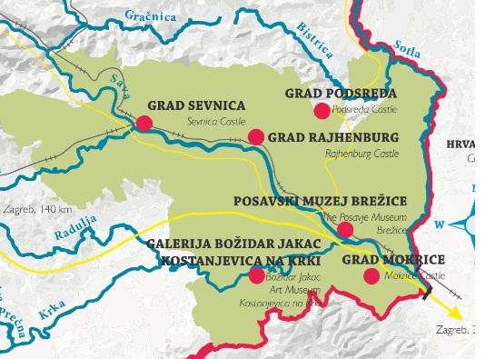 Svoje putovanje možete započeti u Sevnici , gdje iz dvorca možete promatrati rijeku Savu, koja vam je vodilja ka dvorcu Rajhenburg, a vodi vas i do dvorca Brežice. Tamo, na sutoku dviju rijeka Save i Krke, možete se okrenuti natrag rijekom Krkom do Kostanjevice na Krki i do nekadašnjeg impozantnog samostana, ili nastaviti rijekom Savom do dvorca Mokrice.