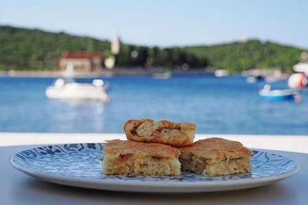 Ovaj specijalitet poznat i kao pogača od slane ribe, ima korijene još iz antičkih vremena. Bilo je to “siromašno”, a opet hranjivo jelo ribara koji su ga nosili na višednevne izlaske na more i posluživali na okupljanjima. Glavni sastojci su: brašno, kapula (luk), slana riba (inćuni ili srdele), ulje, voda i sol. Pogača se pekla u pećima, a poslije Drugog svjetskog rata, s dolaskom rajčice (pome), nastaje Komiška pogača kojoj se dodaje umak od rajčice čiji je recept, za sve one koji su zimi daleko od Visa, Mirela podijelila i s nama.