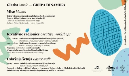 Osim događanja na sam Uskrs, uskršnji program donosi i dodatne sadržaje. Narodni muzej i galerija Novi Vinodolski 1. travnja organizira radionicu decoupage-a sa cvijećem za djecu. Radionica će se održavati u prostoru Narodne čitaonice i knjižnice s početkom u 18:00 sati, a prijave su moguće putem e-mail adrese info@nmig.hr.