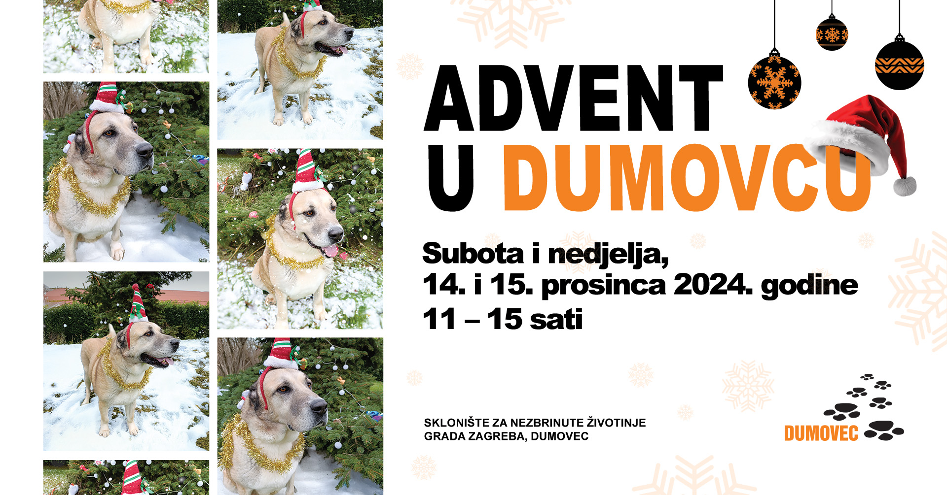 U Skloništu za nezbrinute životinje Grada Zagreba održat će se Advent u Dumovcu. u subotu 14. i nedjelju 15. prosinca 2024. od 11 do 15 sati.
