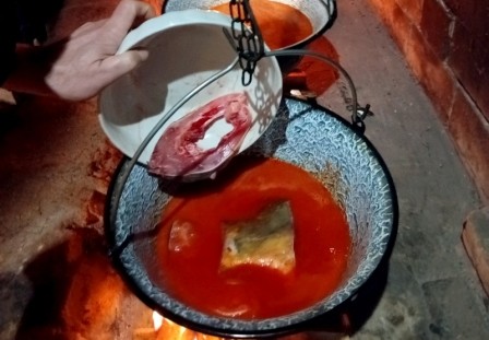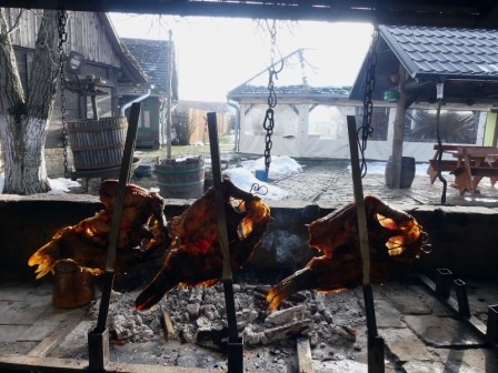 A što smo jeli? Oh, pa što nismo?! Na stolu su se redali sami specijaliteti: namaz od čvaraka, pašteta od riječne ribe, domaći baranjski kulen, slanina i sir, čips od šarana, grah iz ćupa, pečena teletina i puretina sa domaćim krumpirom, a našlo se tu i rijetkih delicija poput guske sa mlincima od koprive. I za kraj – neizbježne taškrle sa domaćim pekmezom od šljiva.