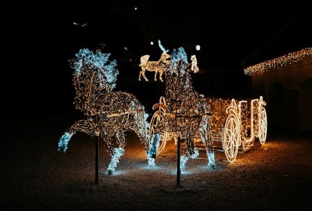 Prošećite kroz „Dvorac svjetla“ – spektakularnu izložbu svjetlosnih skulptura koja će pretvoriti perivoj dvorca u bajkoviti svijet. Kočije, zmajevi, šumske životinje, glazbeni instrumenti i plemićke scene oživjet će u tisućama svjetlosnih tonova. Svaka instalacija spoj je dizajna, mašte i moderne tehnologije.